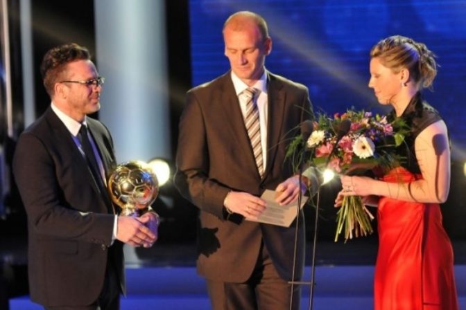Futbalový tréner ŠK Slovan Bratislava Vladimír Weiss st. s Cenou tréner roka počas vyhlásenia ankety Futbalista roka 2022. Senec, 20. marec 2023. Foto: SITA/Diana Černáková