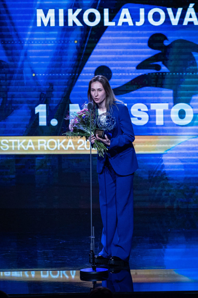 Futbalistka Mária Mikolajová získala 1. miesto v kategórii Futbalistka roka 2023 počas vyhlásenia ankety Futbalista roka 2023. Bratislava, 19. marec 2024. Foto: SITA/Jana Birošová.