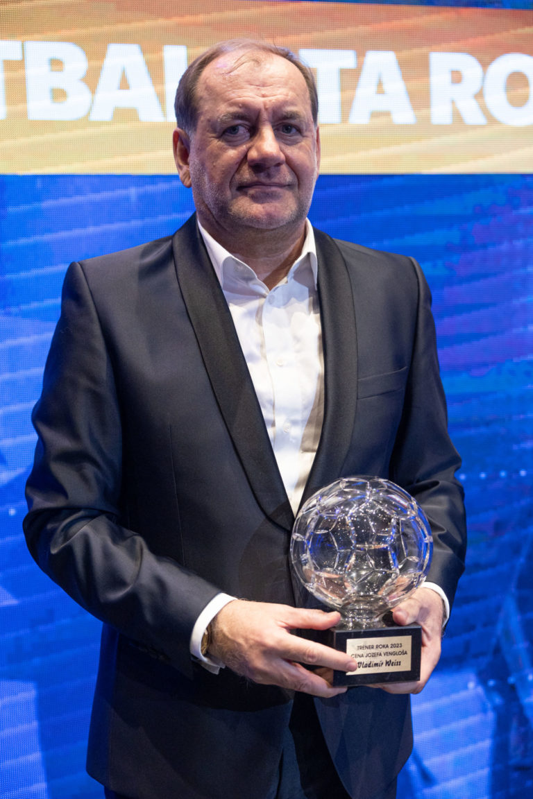 Vladimír Weiss st. získal 1. miesto v kategórii Tréner roka počas vyhlásenia ankety Futbalista roka 2023. Bratislava, 19. marec 2024. Foto: SITA/Jana Birošová.