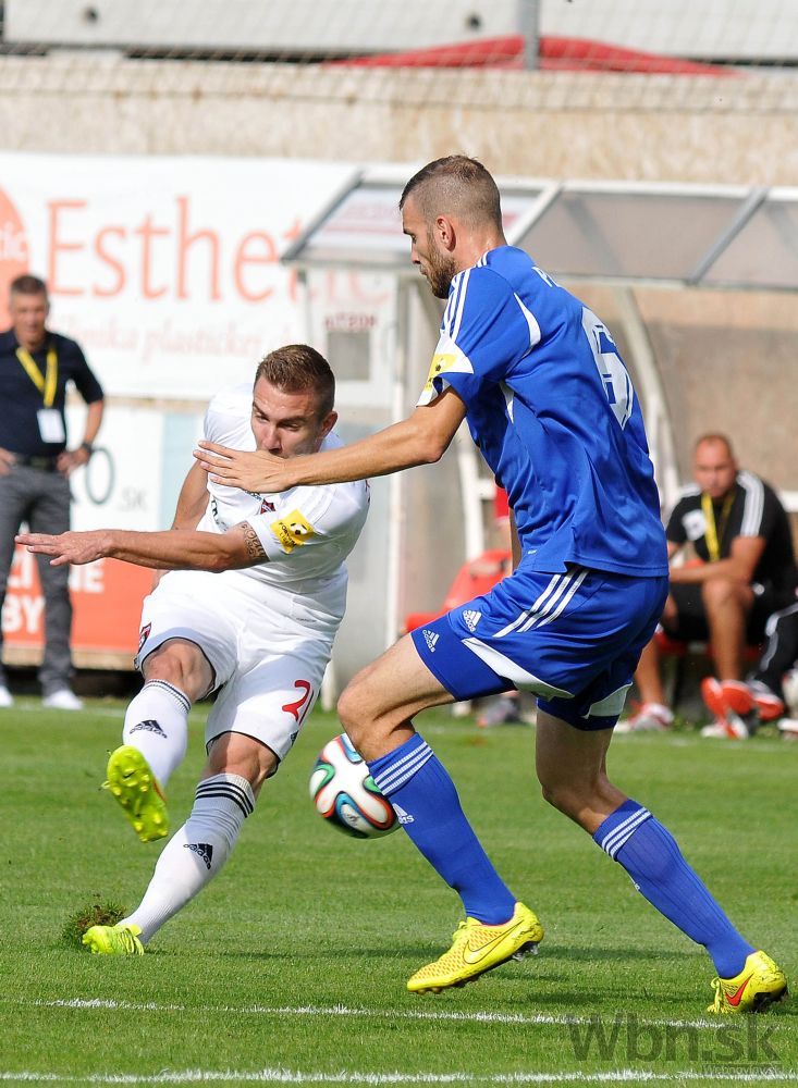 Zľava: Ivan Schranz z Trnavy a Marco De Vito z Banskej Bystrice v zápase 10. kola Fortuna ligy 2014/2015 medzi FC Spartak Trnava a FK Dukla Banská Bystrica. Trnava, 16. september 2014. Foto: SITA/Ivan Kopčáni