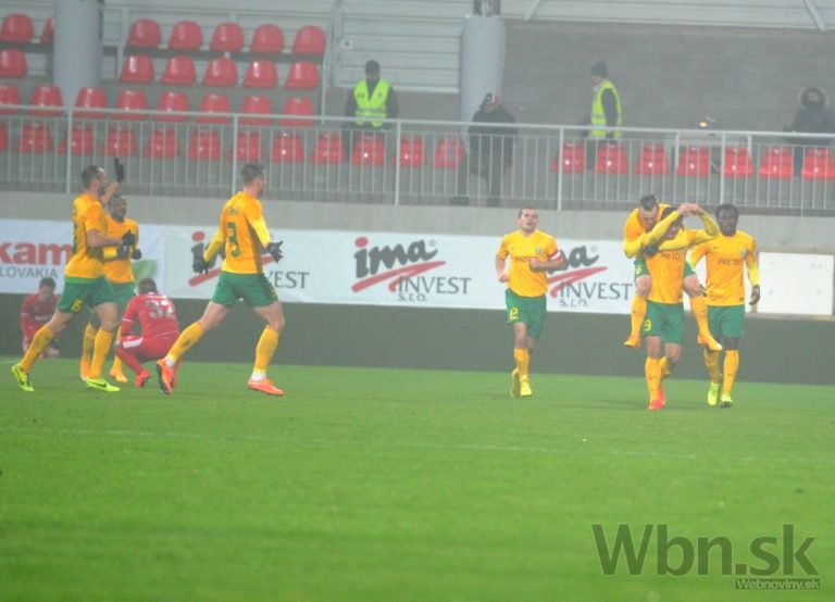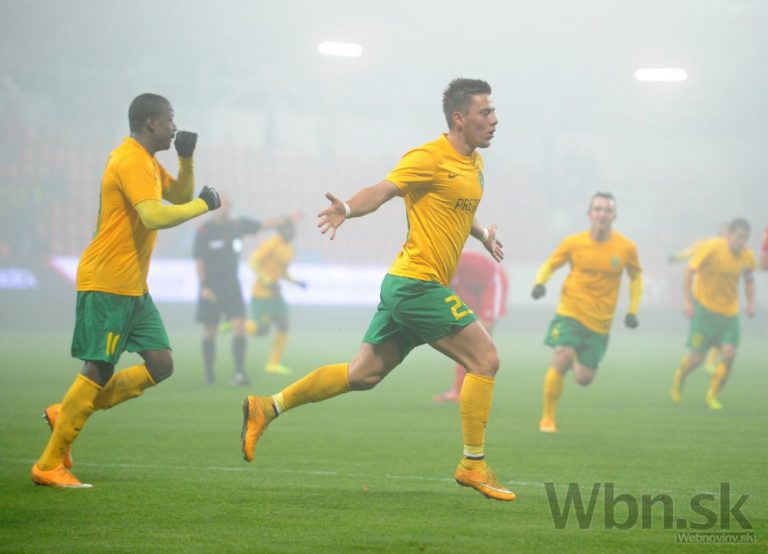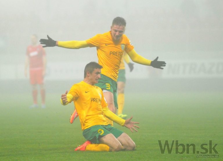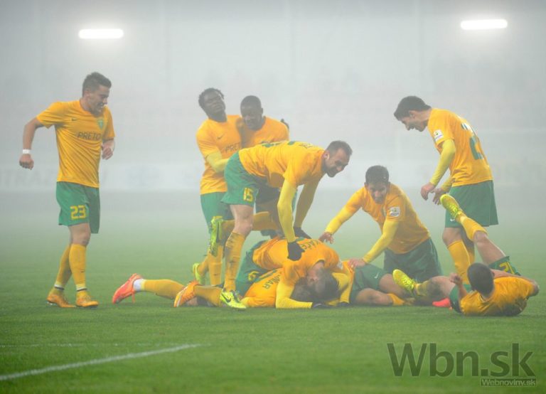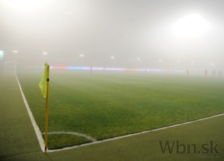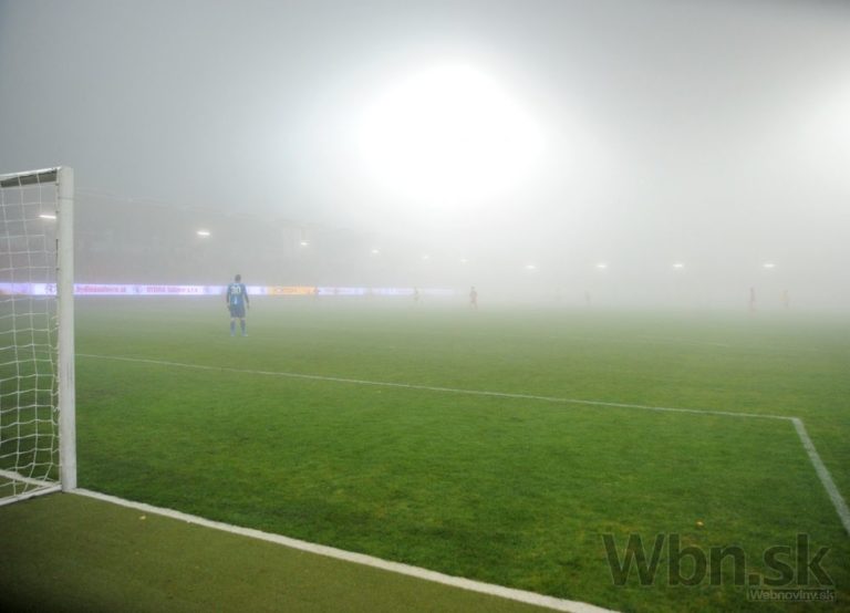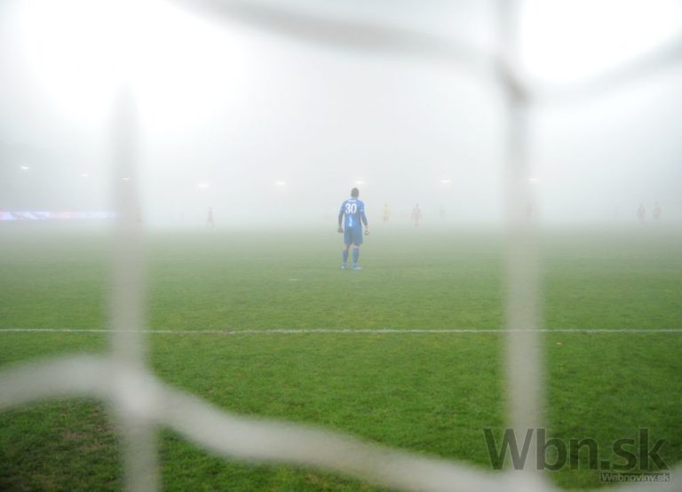 Hustá hmla na štadióne v Zlatých Moravciach počas zápasu 18. kola futbalovej Fortuna ligy medzi domácim FC Vion a MŠK Žilina. Zlaté Moravce, 21. november 2014. Foto: SITA/Martin Havran