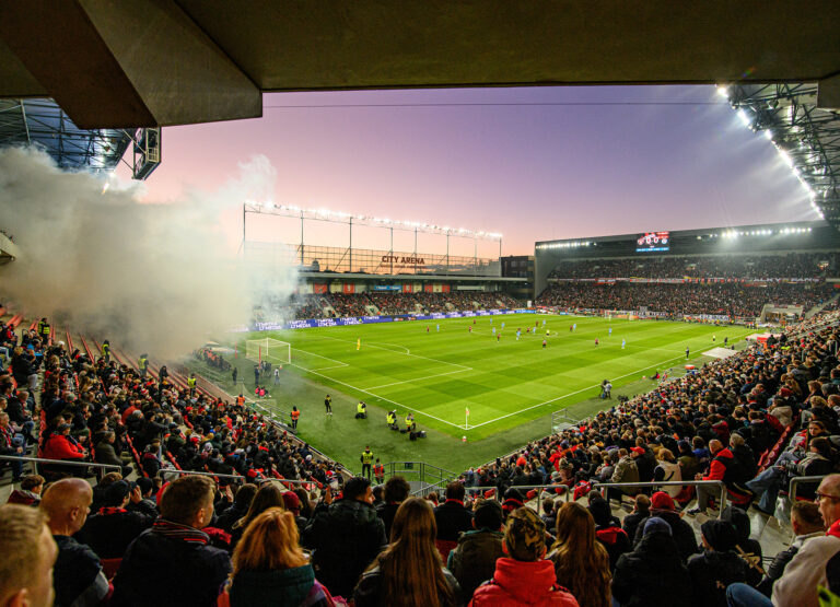 Pohľad na vypredaný Štadión Antona Malatinského v Trnave počas futbalového zápasu 11. kola Niké ligy 2025/2026 medzi FC Spartak Trnava - ŠK Slovan Bratislava. Trnava, 18. október 2025. Foto: SITA/Martin Havran