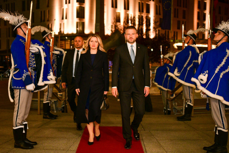 Uprostred zľava: Prezidentka SR Zuzana Čaputová a predseda vlády SR Peter Pellegrini počas príchodu na galavečer pri príležitosti osláv 30. výročia Nežnej revolúcie organizovaného Úradom vlády SR a Ministerstvom kultúry SR v novej budove Slovenského národného divadla v Bratislave. Bratislava, 17. november 2019. Foto: SITA/Úrad vlády SR