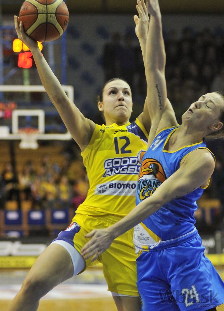 Dvanásty extraligový titul v klubovej histórii získali basketbalistky Good Angels Košice, keď zdolali na domácej pôde Piešťanské Čajky 74:59. (Košice, 8. apríl 2015)