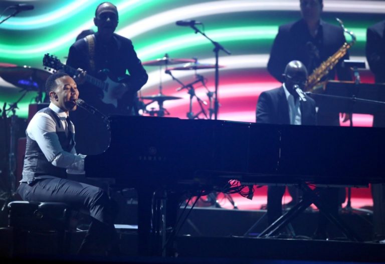 John Legend počas svojho vystúpenia na Grammy Awards. Los Angeles, 15. február 2016. Foto: Matt Sayles/Invision/AP