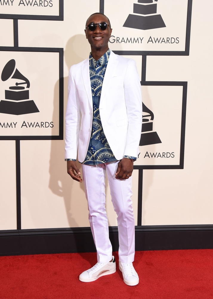 Aloe Blacc prichádza na odovzdávanie Grammy Awards. Los Angeles, 15. február 2016. Foto: Jordan Strauss/Invision/AP