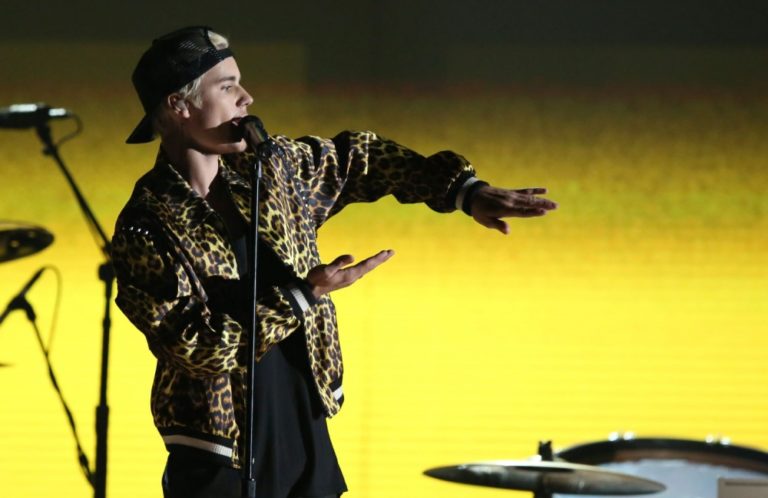 Justin Bieber počas svojho vystúpenia na Grammy Awards. Los Angeles, 15. február 2016. Foto: Matt Sayles/Invision/AP