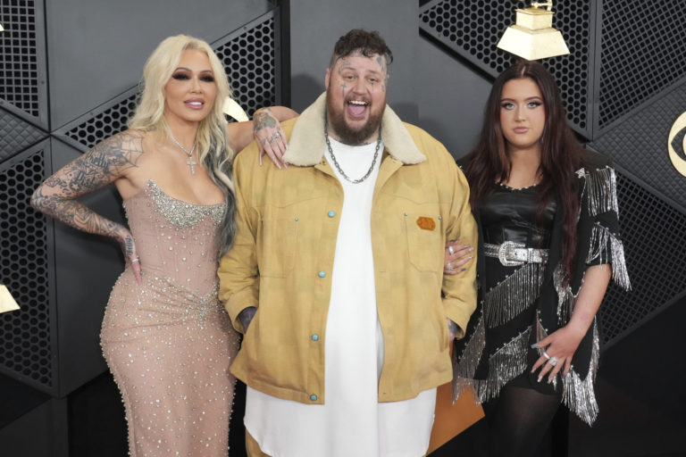 Zľava: Alyssa DeFord, Jelly Roll a Bailee Ann DeFord prichádzajú na 66. ročník odovzdávania cien Grammy. Foto: SITA/AP