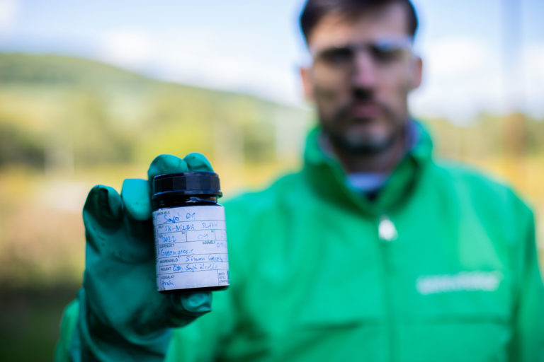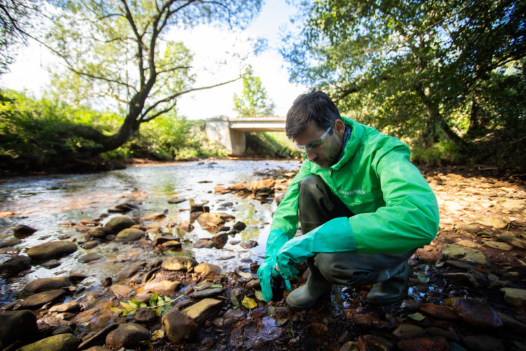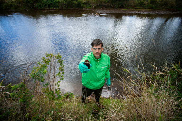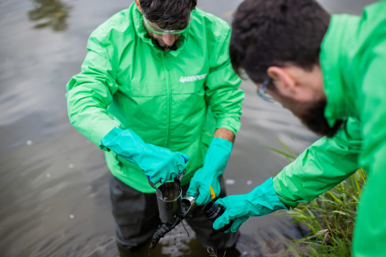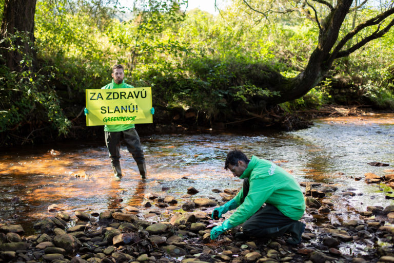 Organizácia Greenpeace odoberala vzorky na rieke Slaná, aby preskúmala znečistenie rieky arzénom. Bratislava, 11. október 2022. Foto: SITA/Dörgõ Zsuzsi/Greenpeace