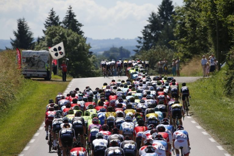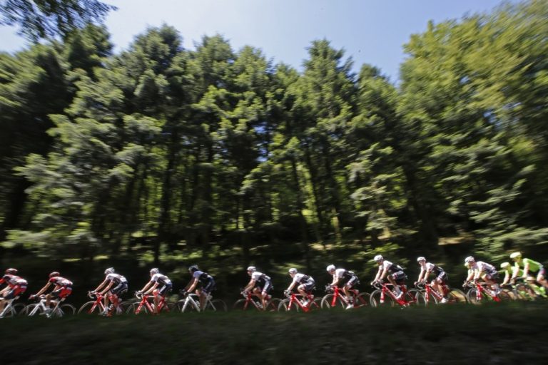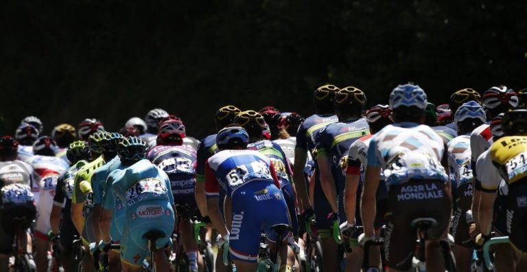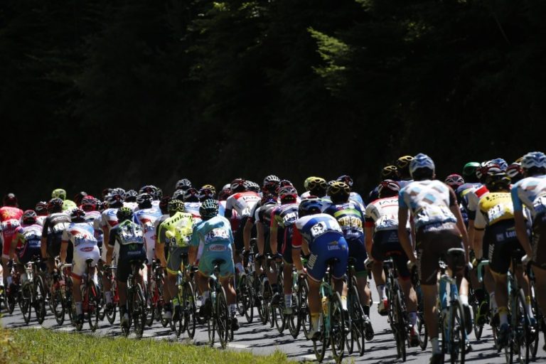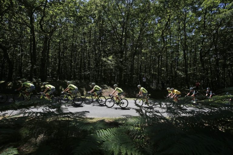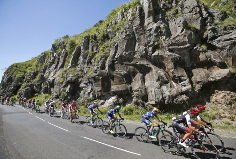 Cyklistický pelotón počas 5. etapy Tour de France, ktorá viedla z Limoges do Le Lioran a merala 216 kilometrov. Foto: SITA/AP