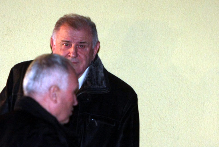 Bývalý predseda vlády SR Vladimír Mečiar odchádza z diskusnej relácie TA3, kde spolu s podpredsedom NR SR Bélom Bugárom diskutovali na tému zrušenia tzv. Mečiarových amnestií, od udelenia ktorých uplynulo pred pár dňami 19 rokov. Bratislava, 7. marec 2017. Foto SITA/Peter Maďar