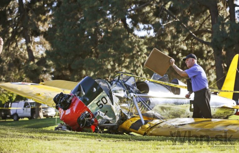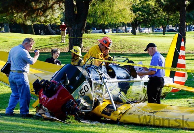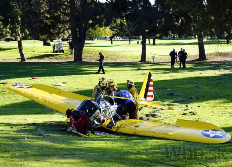 Harrison pilotoval historické lietadlo z obdobia druhej svetovej vojny, ktoré malo krátko po štarte poruchu motora. Bol nútený núdzovo pristáť na golfovom ihrisku pričom sa vážne zranil. Foto: SITA/ AP