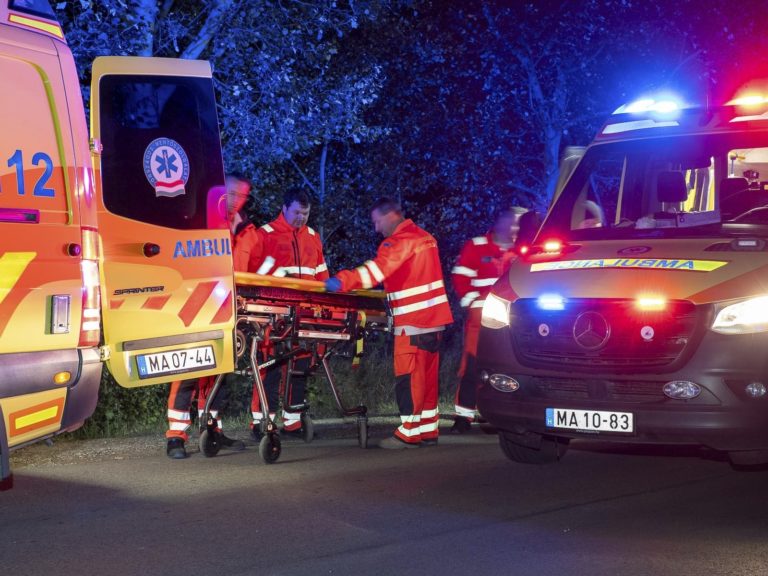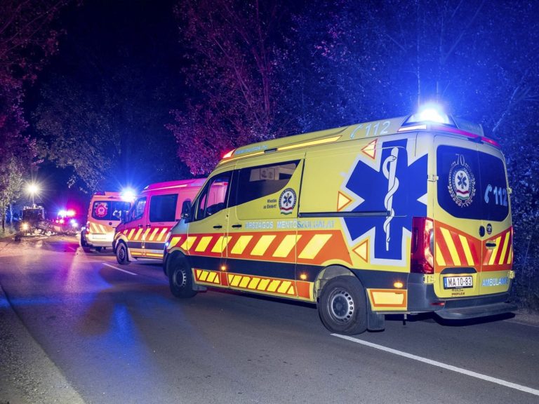 Maďarské sanitky prichádzajú k miestu nehody neďaleko mesta Kiskunmajsa v Maďarsku. Foto: SITA/AP