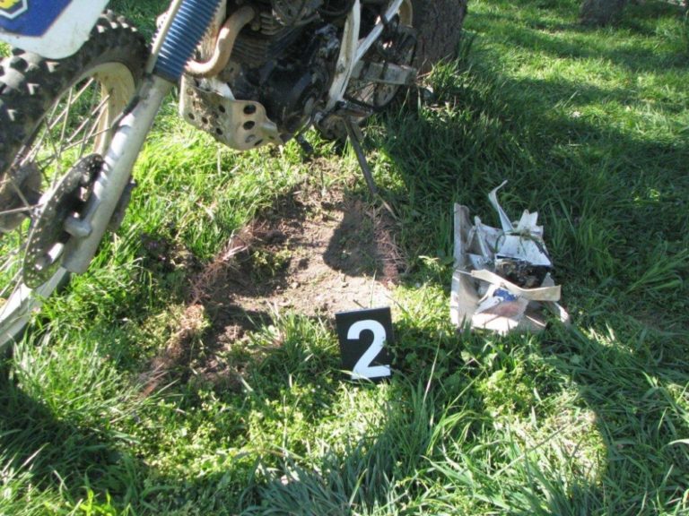 Dvaja ťažko zranení sú výsledkom nehody, ktorá sa stala v obci Holiša v Lučeneckom okrese. Dvadsaťtriročná dievčina, ktorá nevlastní preukaz, si sadla na motocykel Honda. Foto: SITA/KR PZ Banská Bystrica