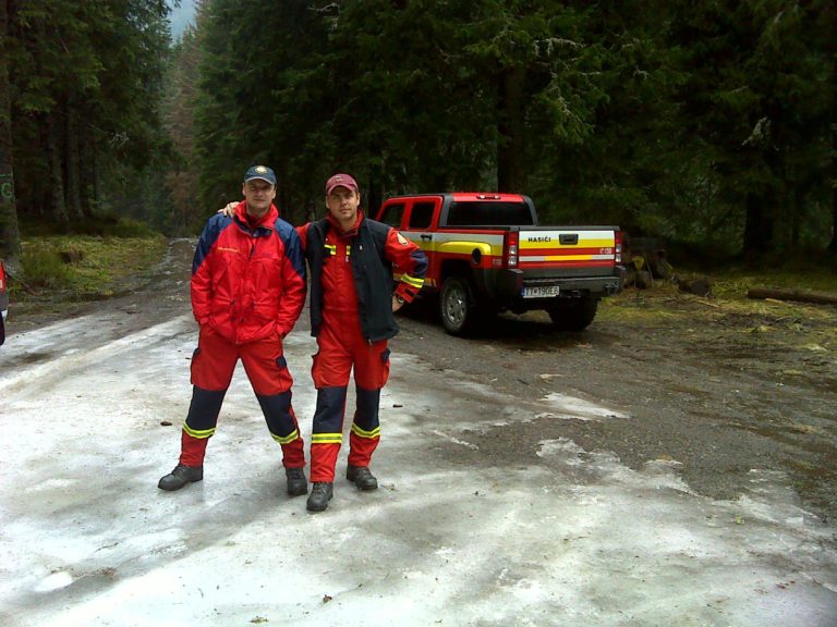 Sprava: Príslušníci HaZZ Peter Toďor a Radoslav Lacko, ktorí dňa 10. mája 2017 tragicky zahynuli pri páde policajného vrtuľníka BL429 vo vojenskom priestore letiska v Prešove. Prešov, 10. máj 2017. Foto: SITA/HaZZ