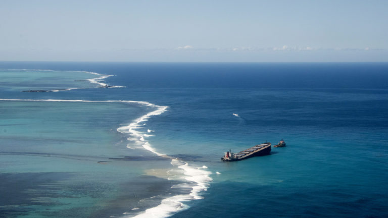 Neďaleko Maurícia narazila na plytčinu japonská loď, z ktorej začala vytekať ropa. Foto: SITA/AP