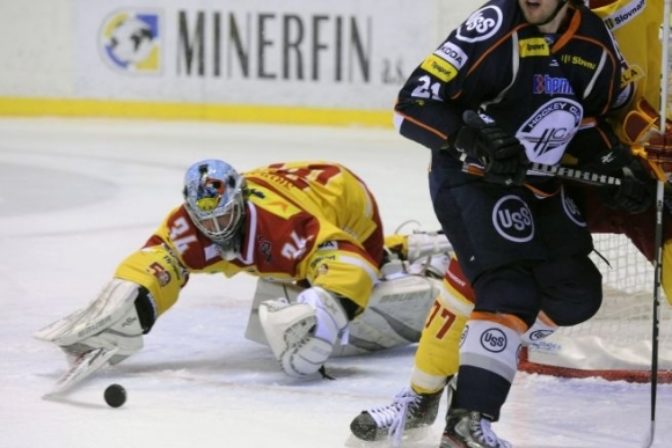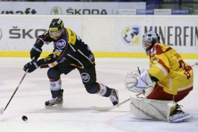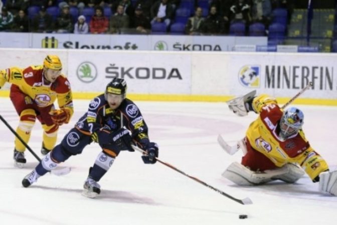 Radosť hráčov HK Dukla Trenčín z gólu. Foto: SITA/Ivan Fleischer