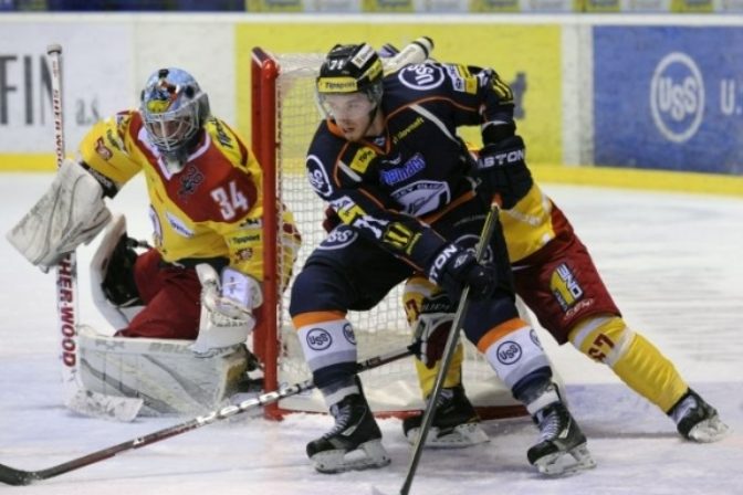 Radosť hráčov HC Košice z gólu v zápase HC Košice - HK Dukla Trenčín. Foto: SITA/Ivan Fleischer