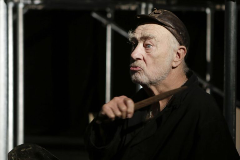 Herec Leopold Haverl (Hrobár) v dokumentárnej dráme v repertoári Činohry Slovenského národného divadla (SND) Karpatský thriller od súčasného slovenského autora, publicistu Eugena Gindla v réžii šéfa Činohry SND Romana Poláka. Bratislava, 12. november 2013. Foto: SITA/SND/Ctibor Bachratý