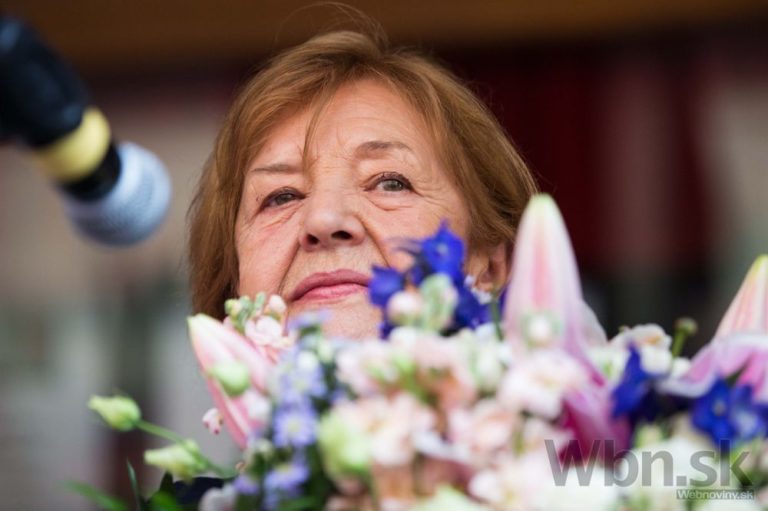 Herečka Eva Krížiková počas slávnostného osadenia pamätnej dlaždice s jej menom na Filmový chodník slávy pred Mestským divadlom P. O. Hviezdoslava. Bratislava, 12. jún 2014. Foto: SITA/Jozef Jakubčo