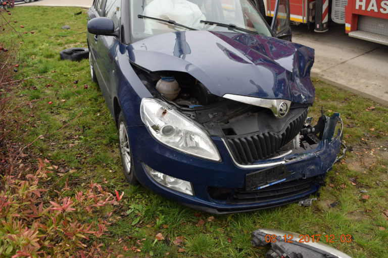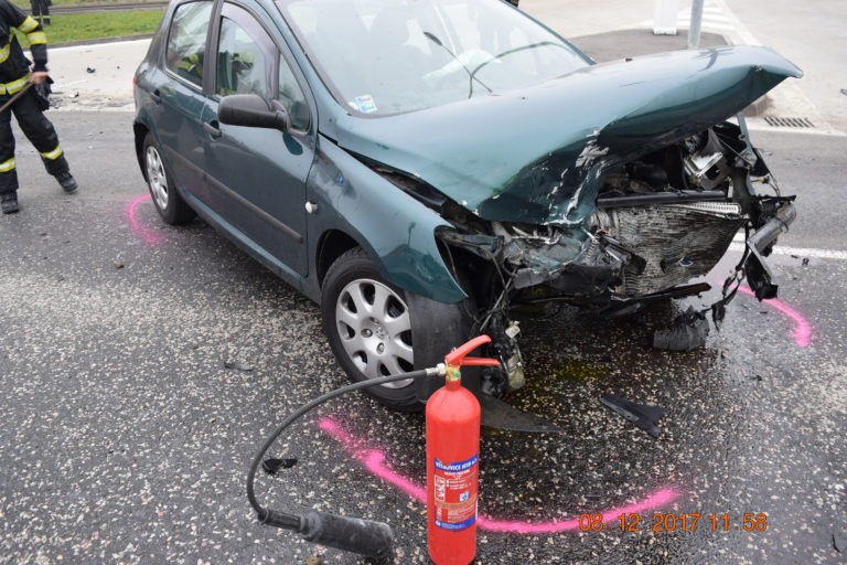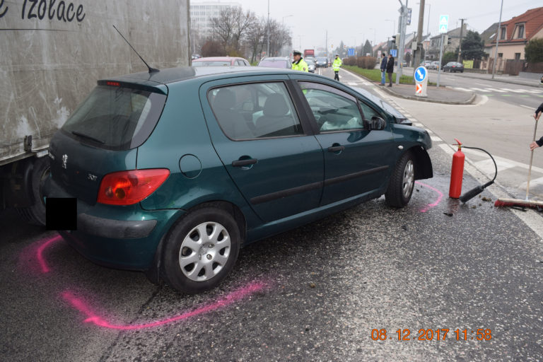 Polícia hľadá svedkov nehody, ktorá sa stala predpoludním 8. decembra na Račianskej ulici v Bratislave. Vodič Fabie išiel po Račianskej smerom von z mesta a pri prechádzaní svetelnej križovatky sa zrazil s Peugeotom 307, ktorý odbočoval vľavo, k budove administratívneho centra. Vodič Fabie sa pri zrážke ľahko zranil. Bratislava, 13. december 2017. Foto: SITA/KR PZ Bratislava.