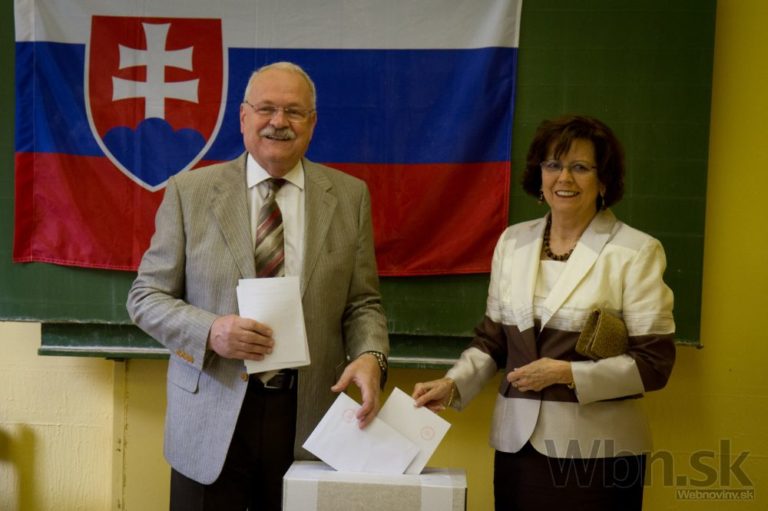 Prezident SR Ivan Gašparovič s manželkou Silviou počas volebného aktu v rámci volieb do Európskeho parlamentu 2014. Bratislava, 24. máj 2014. Foto: SITA/Ľudovít Vaniher