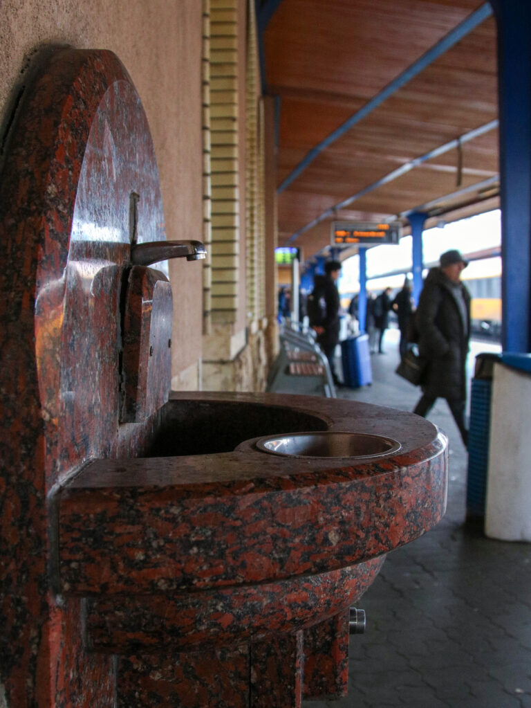 Pitná fontána na nástupišti č. 1 na Hlavnej stanici v Bratislave. Bratislava, 29. január 2026. Foto: SITA/Andrea Mezeiová