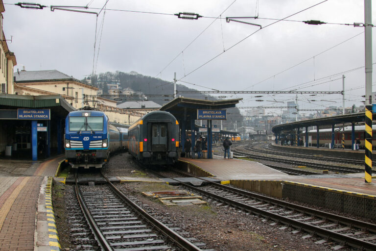 Vlaky na nástupištiach Hlavnej stanice v Bratislave. Bratislava, 29. január 2026. Foto: SITA/Andrea Mezeiová