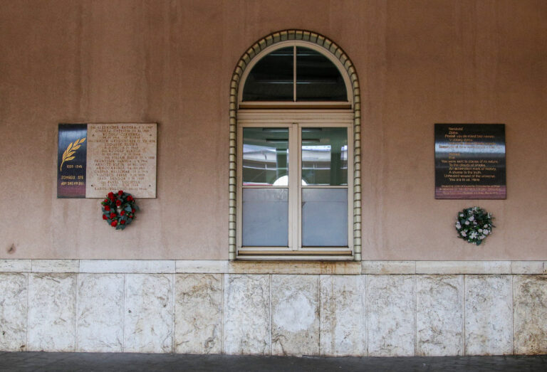 Pamätné tabule židovským deťom a ďalším obetiam holokaustu, ktoré boli vlakmi deportované do koncentračných táborov počas 2. svetovej vojny, na nástupišti na Hlavnej stanici v Bratislave. Bratislava, 29. január 2026. Foto: SITA/Andrea Mezeiová