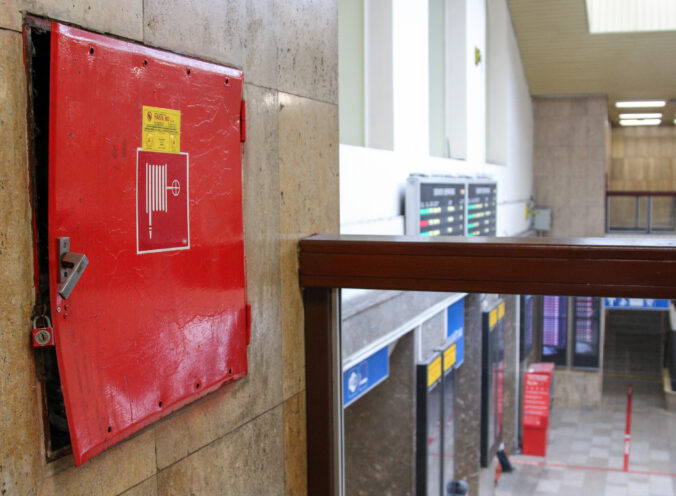 Hasiaci prístroj v nástennej skrinke na Hlavnej stanici v Bratislave. Bratislava, 29. január 2026. Foto: SITA/Andrea Mezeiová