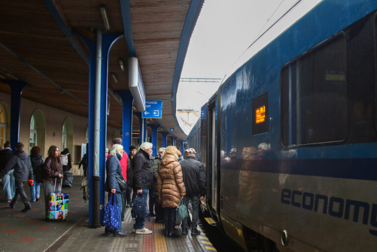 Ľudia nastupujú do vlaku na nástupišti na Hlavnej stanici v Bratislave. Bratislava, 29. január 2026. Foto: SITA/Andrea Mezeiová