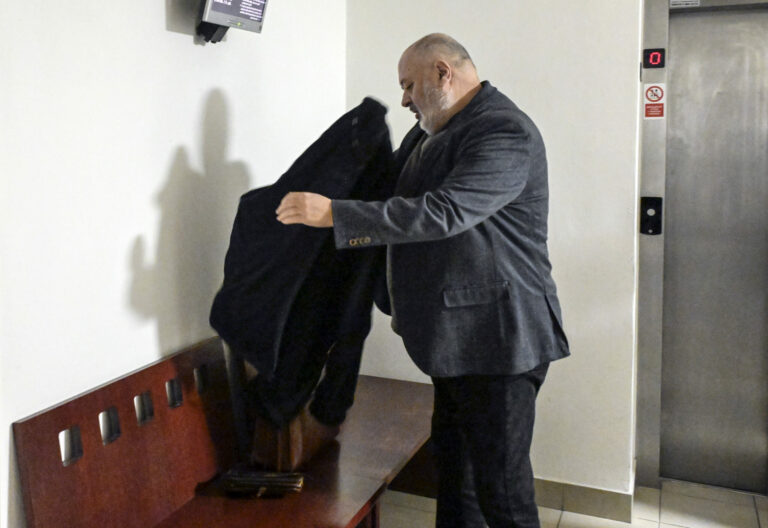 Obvinený bývalý žilinský sudca Pavel Polka, ktorý je stíhaný pre trestný čin nepriamej korupcie, pred hlavným pojednávaním na Špecializovanom trestnom súde v Pezinku. Pezinok, 26. február 2025. Foto: SITA/Milan Illík