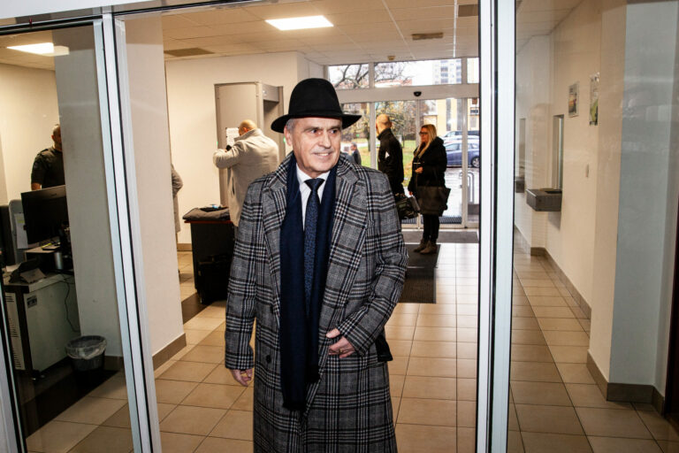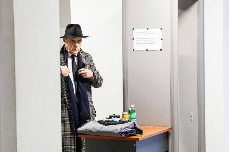 Obhájca Ondrej Mularčík pred hlavným pojednávaním s guvernérom Národnej banky Slovenska Petrom Kažimírom počas jeho neprítomnosti v priestoroch Špecializovaného trestného súdu v Pezinku. Pezinok, 29. november 2024. Foto: SITA/Bokor Tomáš.