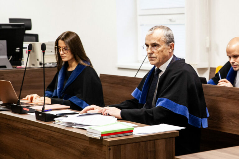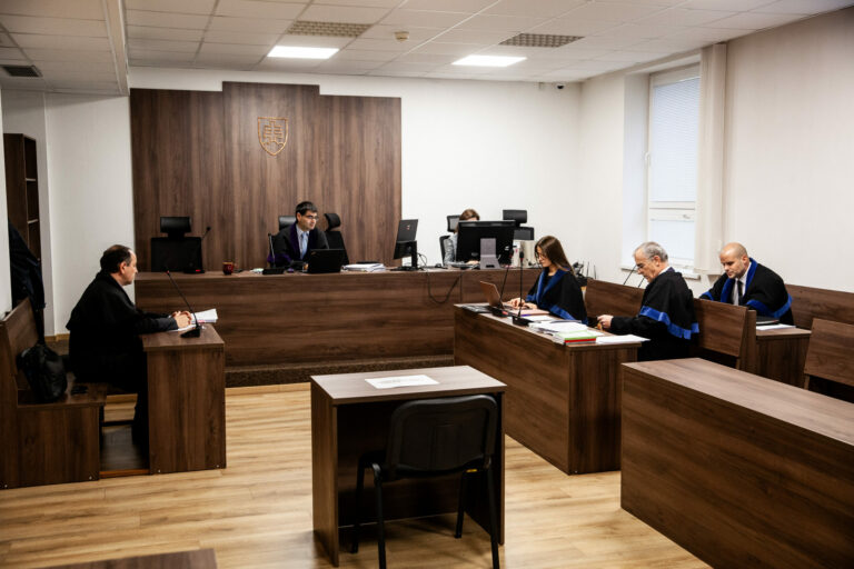 Súdna sieň počas hlavného pojednávania s guvernérom Národnej banky Slovenska Petrom Kažimírom počas jeho neprítomnosti v priestoroch Špecializovaného trestného súdu v Pezinku. Pezinok, 29. november 2024. Foto: SITA/Bokor Tomáš.