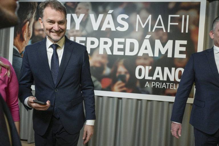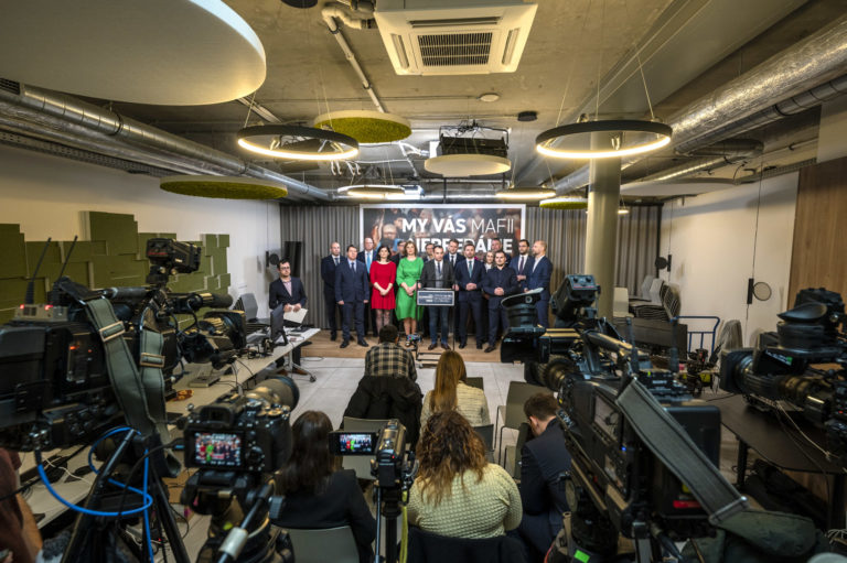 Atmosféra počas predstavenia kompletnej kandidátky hnutia Slovensko a Za ľudí do volieb do Európskeho parlamentu (EP). Bratislava, 13. marec 2024. Foto: SITA/Milan Illík.