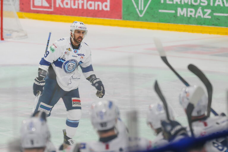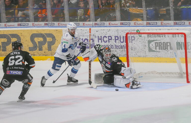 Nitriansky útočník Jaedon Descheneau pred svojim gólom na 1:0 v 5. zápase Tipos extraligy proti HC Košice. Košice (Steel Aréna), 25. apríl 2025. Foto: SITA/Peter Jesenský.