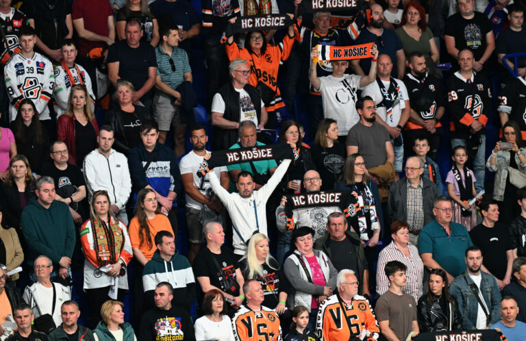 Fanúšikovia počas 7. finálového zápasu medzi HC Košice a HK Nitra. Košice (Steel Aréna), 29. apríl 2025. Foto: SITA/Viktor Zamborský.