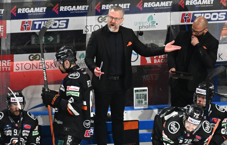 Tréner HC Košice Dan Ceman počas zápasu proti HK Nitra v 7. finále Tipos extraligy. Košice (Steel Aréna), 29. apríl 2025. Foto: SITA/Viktor Zamborský.