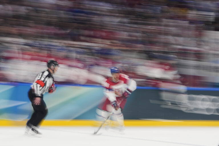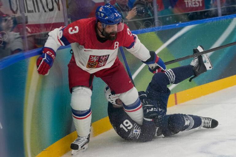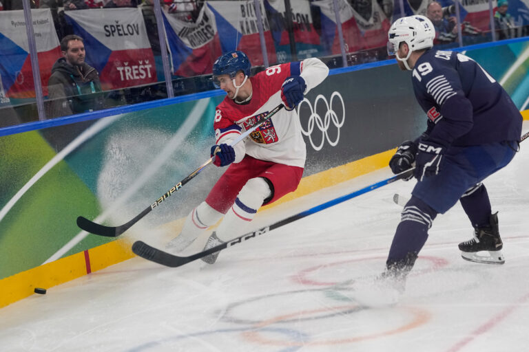 Český obranca Radim Šimek počas zápasu proti Francúzsku v základnej A-skupine na zimnej olympiáde. Miláno (Santa Giulia Ice Hockey Arena), 13. február 2026. Foto: SITA/AP.