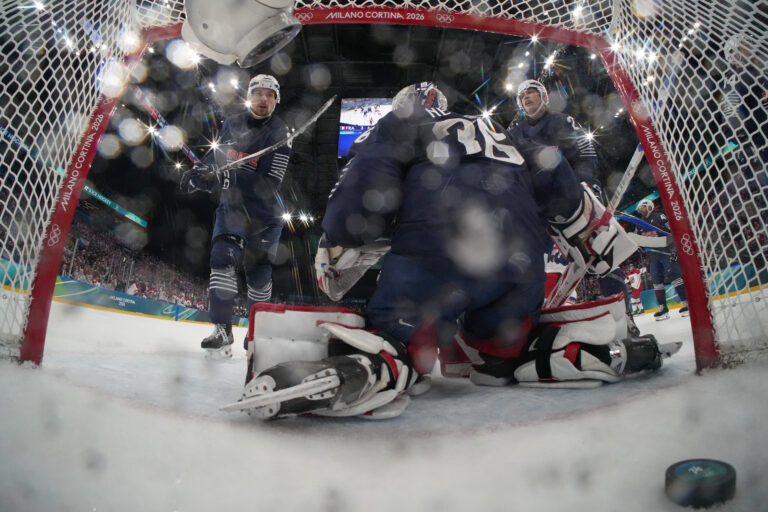 Vyrovnávajúci gól na 3:3 českého útočníka Davida Pastrňáka v zápase proti Francúzsku v základnej A-skupine na zimnej olympiáde. Miláno (Santa Giulia Ice Hockey Arena), 13 február 2026. Foto: Mike Segar/Pool Photo via AP.