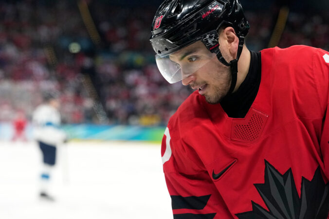 Kanaďan Nick Suzuki počas semifinálového zápasu proti Fínsku na zimnej olympiáde. Miláno (Santagiulia Ice Hockey Arena), 20. február 2026. Foto: SITA/AP.