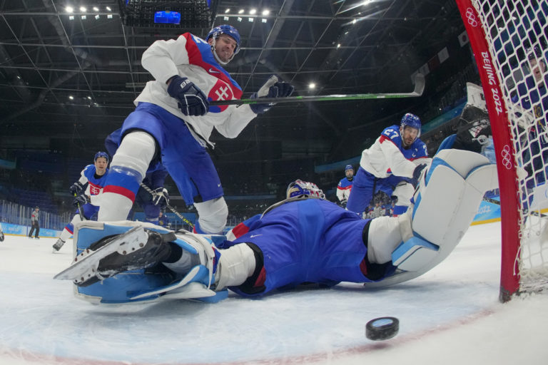 Veľká šanca slovenského kapitána Marka Hrivíka počas semifinálového zápasu proti Fínsku na zimnej olympiáde. Peking, 18. február 2022. Foto: SITA/AP.