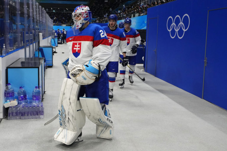 Slovenský gólman Patrik Rybár pred semifinálovým zápasom proti Fínom na zimnej olympiáde. Peking, 18. február 2022. Foto: SITA/AP.