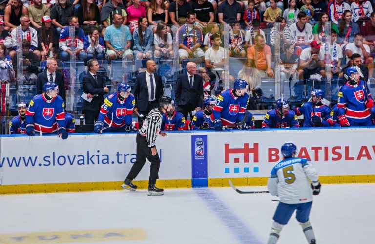Slovenská striedačka v zápase olympijskej kvalifikácie proti Kazachstanu. Bratislava, 1. september 2024. Foto: SITA/Tomáš Susko.
