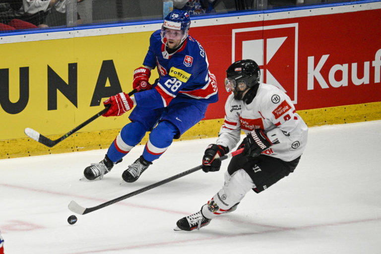 Slovenský obranca Martin Gernát počas zápasu proti Rakúsku v kvalifikácii o postup na zimnú olympiádu 2026 do Turína. Bratislava, 29. august 2024. Foto: SITA/Milan Illík.