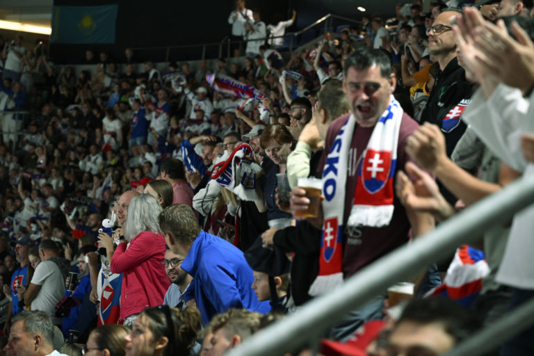 Fanúšikovia počas zápasu olympijskej kvalifikácie medzi Slovenskom a Rakúskom. Bratislava, 29. august 2024. Foto: SITA/Milan Illík.