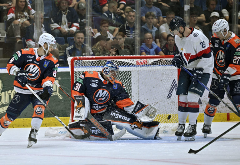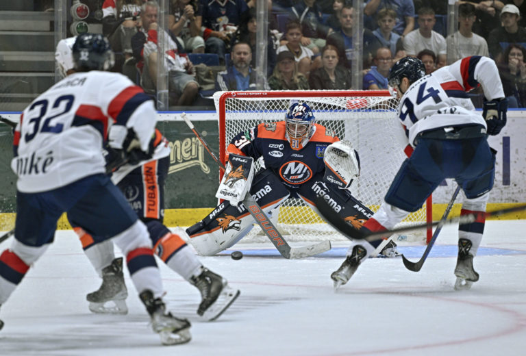 Brankár Stanislav Škovránek z HK Michalovce počas zápasu 1. kola Tipos extraligy 2023/2024 proti HC Slovan Bratislava. Bratislava, 15. september 2023. Foto: SITA/Milan Illík