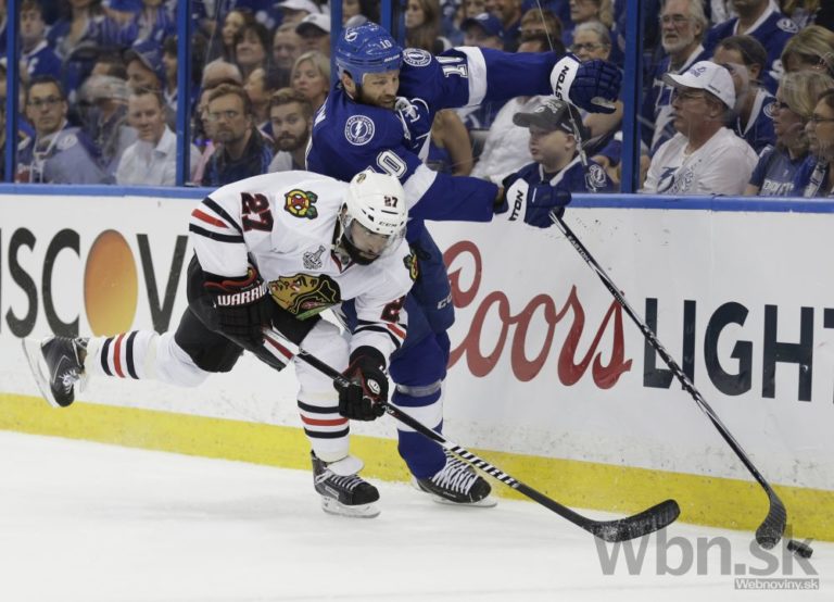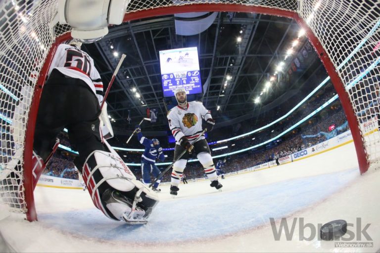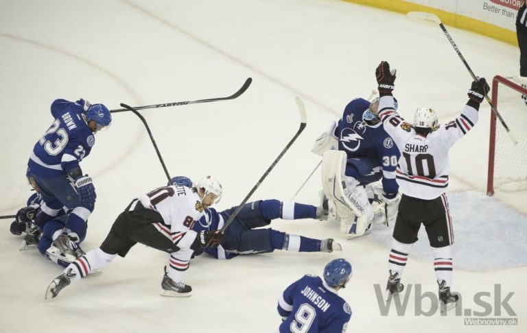 Hráč Chicaga Antoine Vermette strelil do brány Tampa Bay rozhodujúci gól počas prvého finálového zápasu Stanleyho pohára. Tampa, 4. júna 2015. Foto: SITA/AP