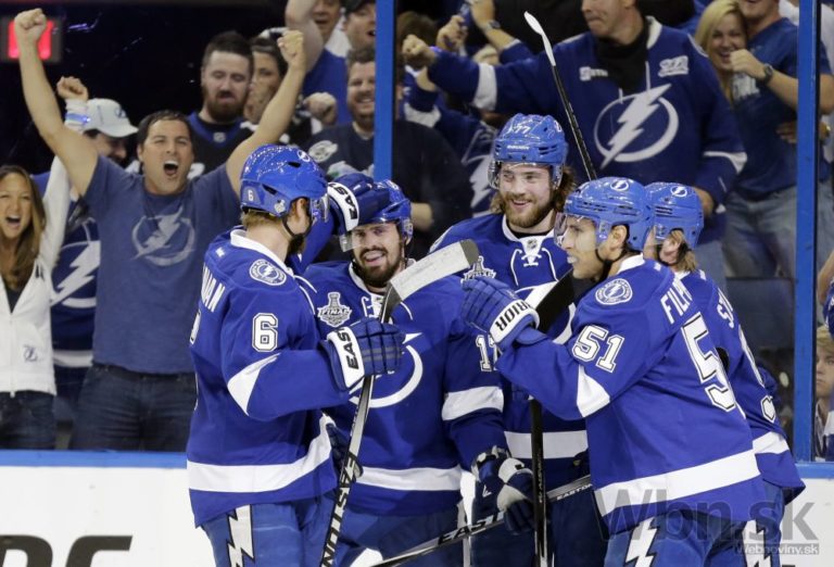 Hokejisti Tampa Bay sa tešia z prvého gólu, ktorý strelil v 5. minúte Alex Killorn. Tampa, 4. júna 2015. Foto: SITA/AP