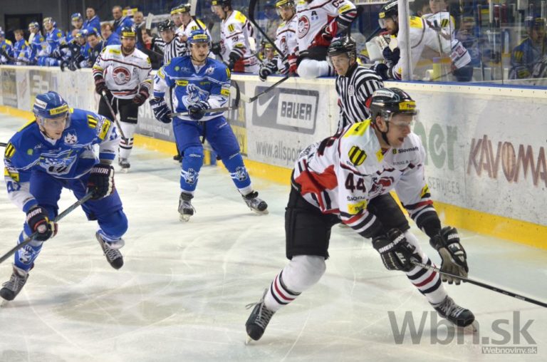 Richard Rapáč z HK Poprad (vpravo) a Lukáš Bambúch z HC ´05 Banská Bystrica (vľavo) počas zápasu 44. kola Tipsport extraligy HK Poprad – HC ´05 Banská Bystrica. Poprad, 25.január 2015. Foto: SITA/Radoslav Maťaš